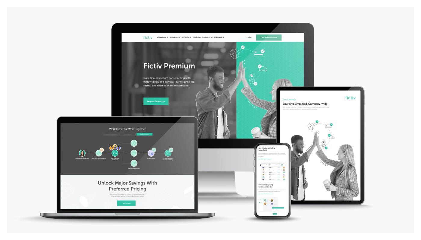 Fictiv is a platform that helps engineers bring parts to market faster. We were brought on to refresh the brand’s design system across every touchpoint. We created social-first graphics that were so loved they were made into t-shirts. We also assisted in the design of the brand guidelines, event and booth graphics, print ads, brochures, packaging and tape for shipping parts, executive presentations, web design and product launch campaigns just to name a few.