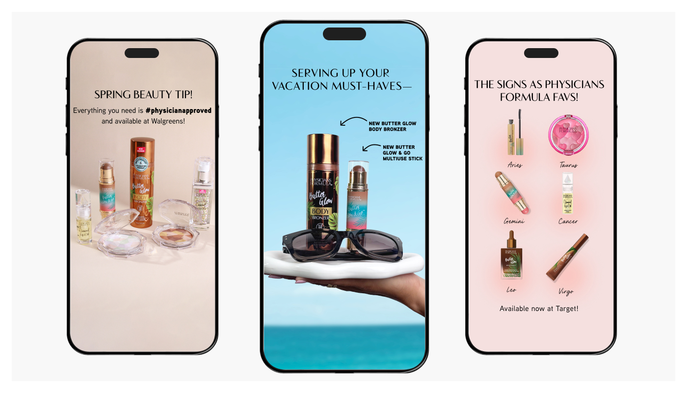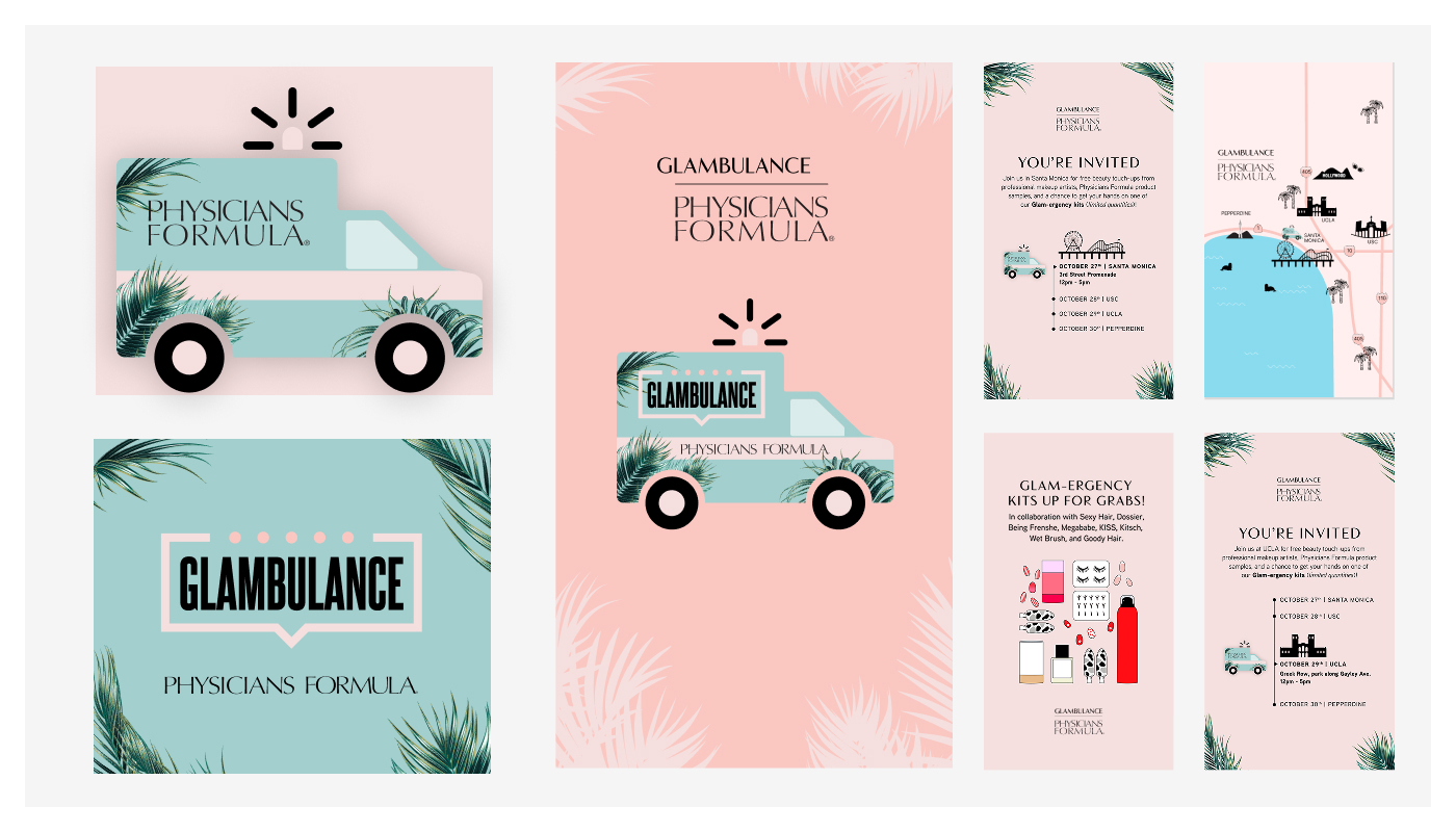 Under Markwins, my team manages the Physicians Formula brand across social channels, developing content strategies and executing everything from in-house photoshoots and social calendars to TikTok content, illustrations, and paid ads. We also created the social promotion and event graphics for the Glambulance activation.