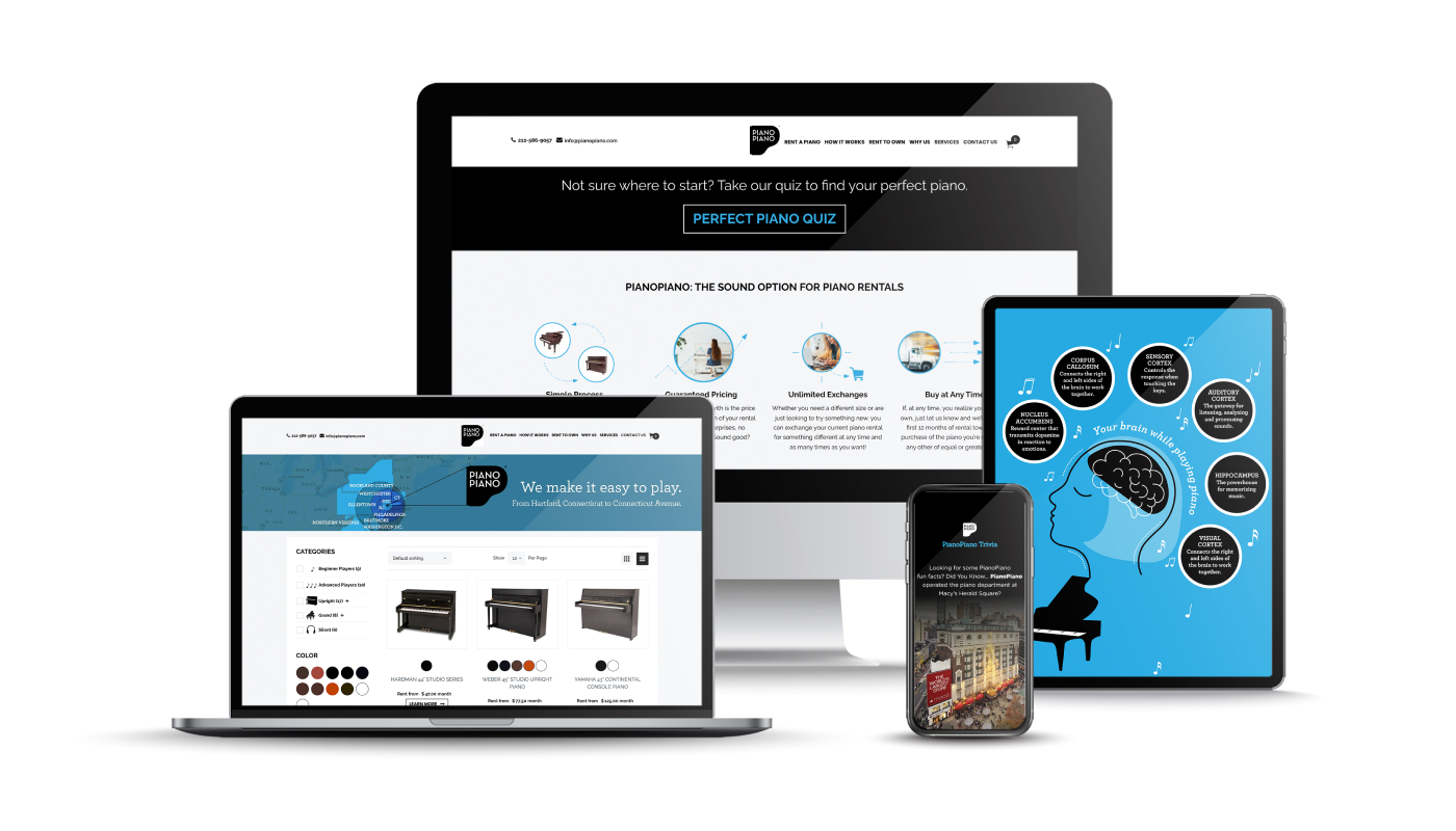 PianoPiano has been a valued partner for many years, trusting us to shape their brand and sub-brands across every medium. Our work spans ads, emails, social graphics, van wraps, studio wall designs, print collateral, brand identity, and event graphics ensuring a cohesive look and feel at every touchpoint.